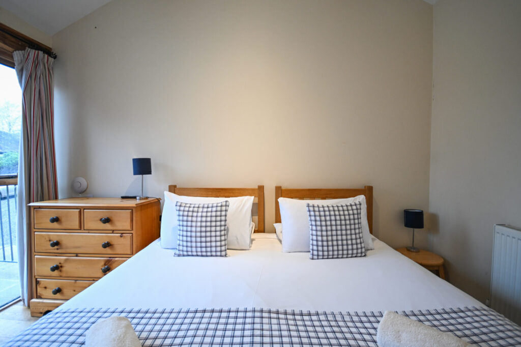 The lounge features two large, comfortable sectional sofas, a TV and plenty of space for board games, rest and relaxation, while a separate snug room provides a cosy spot for reading and playing games. The custom-built, fully fitted kitchen is ideal for group dining, equipped with an electric double oven cooker, microwave, fridge, freezer and washing machine, with cupboards stocked with all necessary pots, pans, dishes and cutlery. A large dining table sits within the open-plan kitchen, creating the perfect setting for shared meals with family and friends. Downstairs there is a twin bedroom with a zip-and-link option and a spacious wet-room bathroom with a walk-in shower, toilet and sink, offering disabled access to both the bedroom and bathroom. Upstairs you will find another twin bedroom with a zip-and-link option, each bedroom benefiting from its own en-suite, plus a large master suite with its own studio kitchen and bathroom. Private parking and a generous outdoor patio area allow guests to enjoy both indoor and outdoor living throughout their stay.