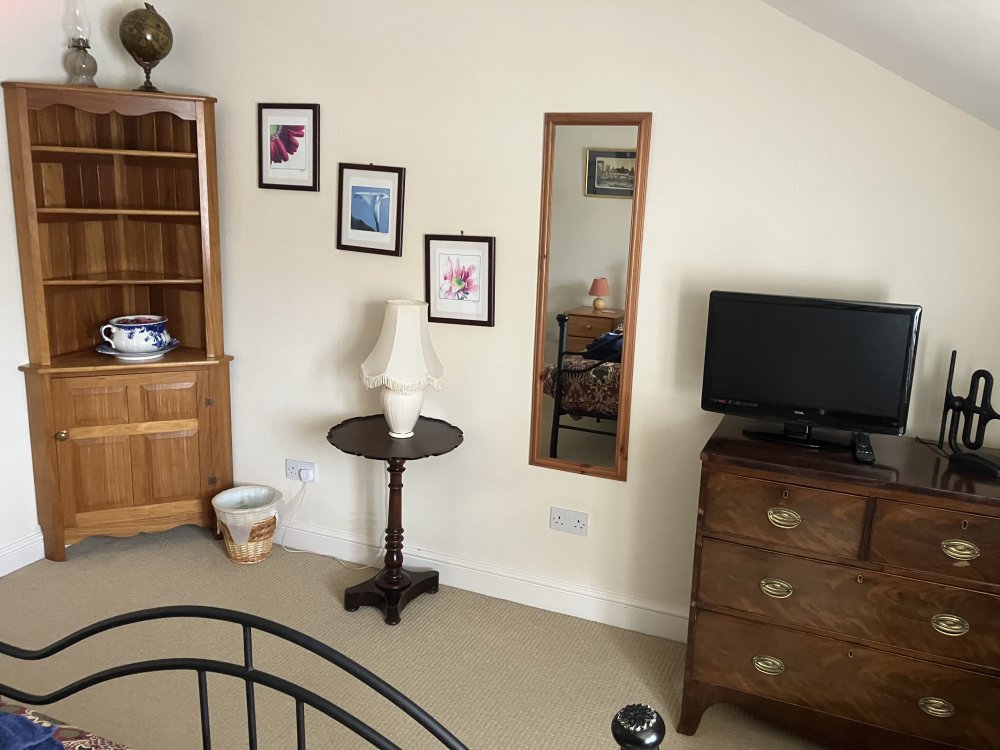 There have, however, been buildings on the site since the 13th century. The house has a medieval stonewall in the dining room and beams of the earlier 17th century timber framed house in the sitting room. The bedroom and its en suite shower room.