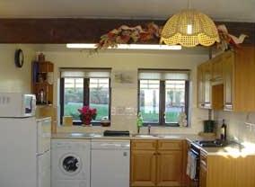 Larks Rise offers good accommodation to a high standard. A double bedroom with wardrobe and dressing table, and room for a cot if required, it has two windows that look out over green fields where cattle and sheep graze. The twin bedroom has french windows, and room for a folding bed. The shower room has a flat floor shower, toilet, and wash basin, and mirror with shaver point. A very well equipped kitchen with dishwasher, cooker, washing machine, fridge and microwave, quality cookware, crockery and utensils, has an adjoining dining area. The lounge has a beamed ceiling, oak corner unit that houses a ctv, video and coal effect fire.