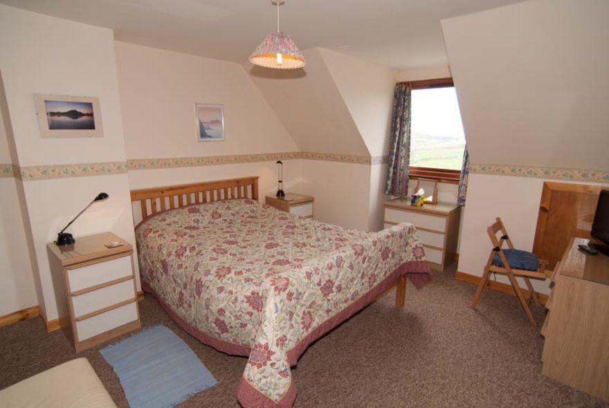 On the first floor: Bedroom with twin beds, wardrobe and dresser portable TV and hairdryer. Bedroom with king size bed, wardrobe and dresser, portable TV and hairdryer. This room has an en suite shower room with toilet.