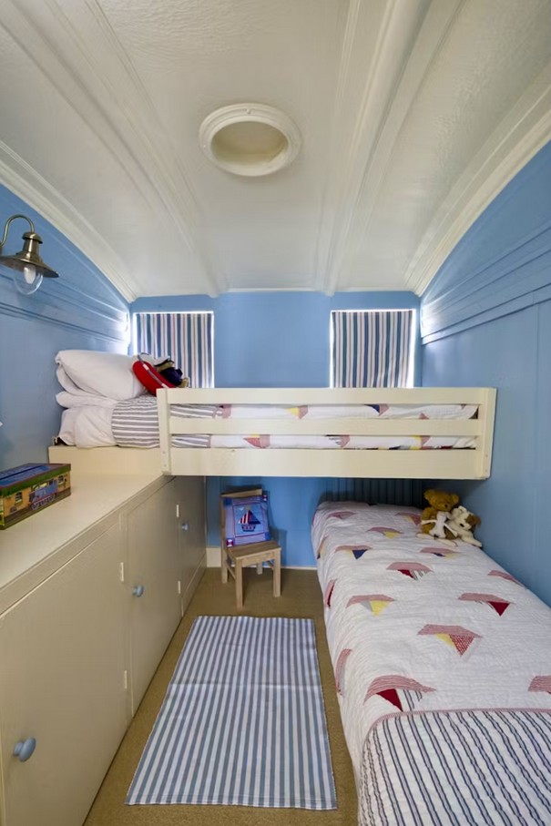 Seabank enjoys a prime location right on the seafront in Selsey, West Sussex, offering unparalleled proximity to the beach. This unique property incorporates two 19th-century Stroudley railway carriages that have been lovingly restored and integrated into its structure. These carriages, once part of the Brighton to London line, were repurposed as holiday homes along the Sussex coast after World War I. At Seabank, each carriage has been ingeniously modified to preserve its historic charm while providing cosy and distinctive living areas.