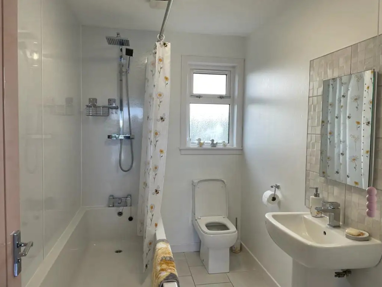 The fully equipped kitchen is perfect for creating delicious home-cooked meals to enjoy around the dining table. It includes an electric oven and hob, microwave, slow cooker, air fryer and fridge-freezer, along with all the utensils you’ll need. The utility room also features a washing machine, tumble dryer, iron and ironing board for added convenience. Modern comforts include WiFi throughout the property and a TV with Freesat and Firestick access, allowing guests to log in to their own streaming accounts.
