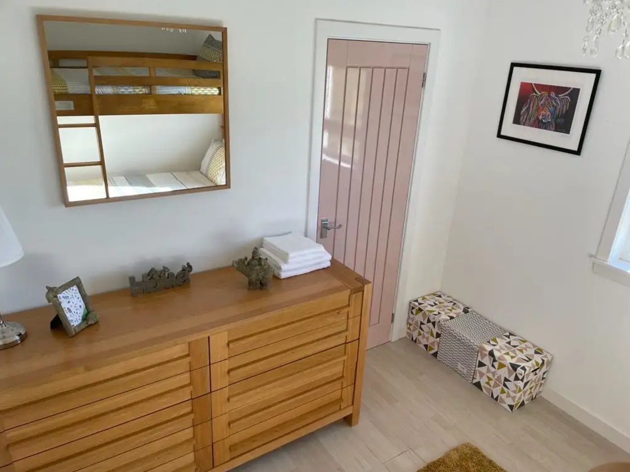 The accommodation features two cosy bedrooms, ensuring a restful stay for all. The master bedroom offers a plush double bed, while the second bedroom includes comfortable bunk beds ideal for children. For families with infants, a cot is available upon request, ensuring everyone enjoys a peaceful night’s sleep.