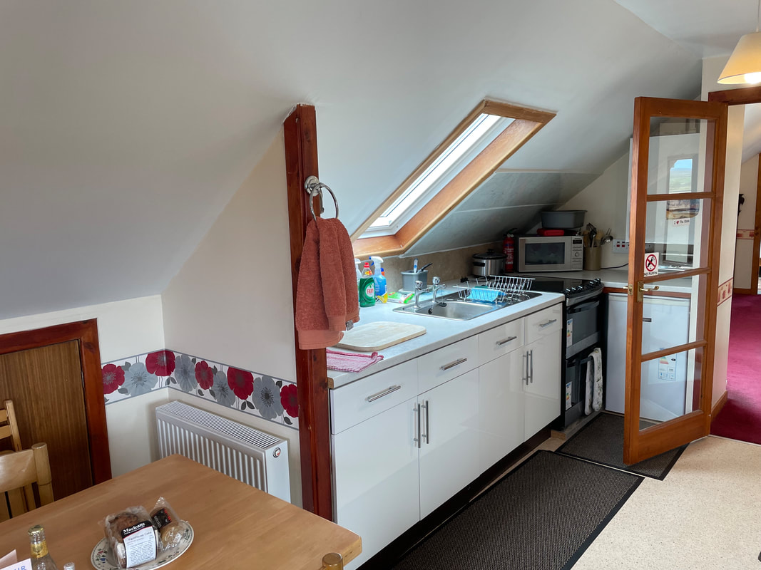 This is a two-storey cottage, generously furnished and fully equipped with oil-fired central heating. The ground floor features a spacious lounge with comfortable furnishings and an open fireplace, offering panoramic views of the landscape through its large west-facing window. The kitchen/dinette is well-appointed with an electric cooker, microwave oven, dishwasher, fridge freezer and toaster. Downstairs, there are two bedrooms: one with a double bed and the other with twin beds, each equipped with its own wash basin. The bathroom on this level includes both a bath and a separate walk-in shower. Upstairs, there is an additional twin-bedded room and a shower/toilet room. The utility area upstairs houses a tumble dryer and freezer, along with drying space and linen storage. Outdoor drying facilities are also available. Ample parking is provided. Short Term Let Licence No: ES00200F.